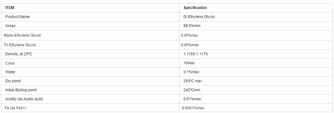 Diethylene glycol(DEG) is an organic compund with the formula(HOCH2CH2). It is a colorless, practically odorles, poisonous, and hygroscopic liquid with a sweetish taste. It is miscible in water, alcohol, ether, acetone, and ethylene glycol.